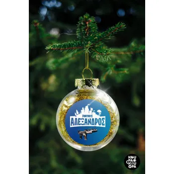Fortnite with gun με το όνομα σου, Transparent Christmas tree ball ornament with gold filling 8cm