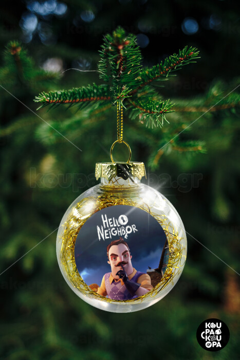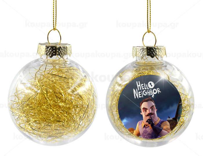 Hello Neighbor, Transparent Christmas tree ball ornament with gold filling 8cm