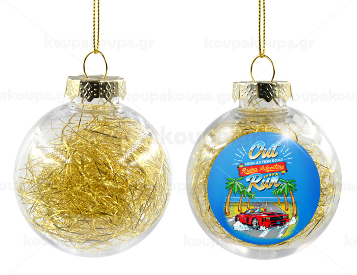 outrun game, Transparent Christmas tree ball ornament with gold filling 8cm