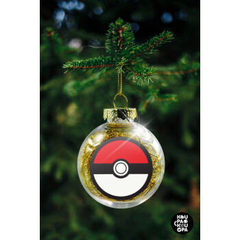 Pokemon ball, Transparent Christmas tree ball ornament with gold filling 8cm