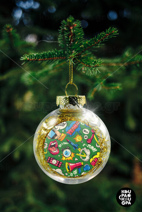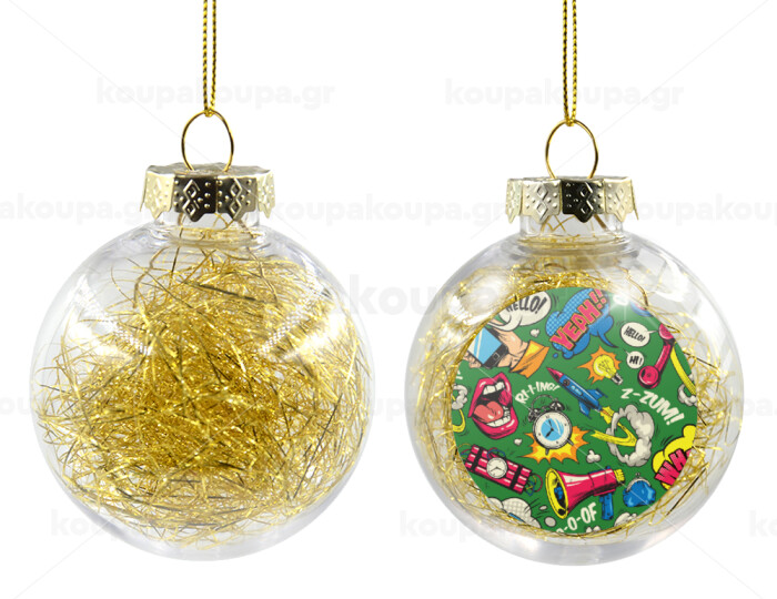 Pop art colorful seamless, Transparent Christmas tree ball ornament with gold filling 8cm