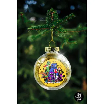 Rainbow friends, Transparent Christmas tree ball ornament with gold filling 8cm