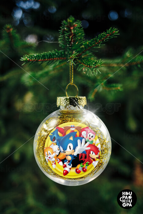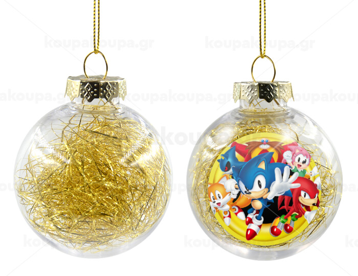 Sonic and friends, Transparent Christmas tree ball ornament with gold filling 8cm