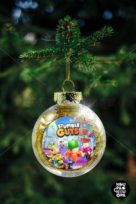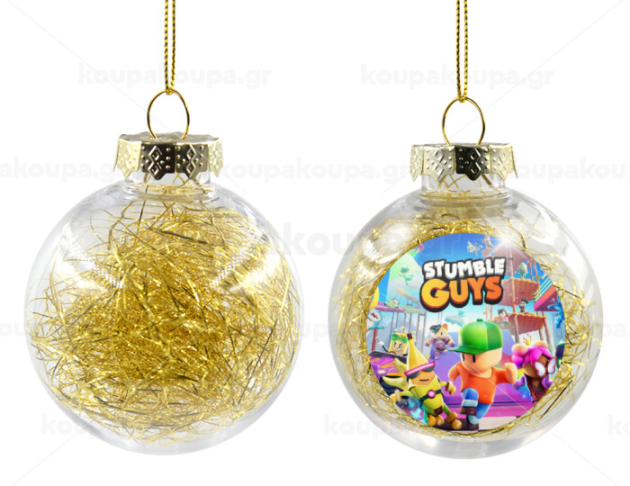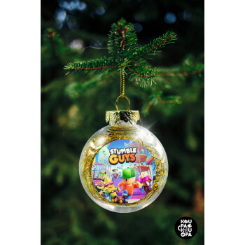 Stumble Guys, Transparent Christmas tree ball ornament with gold filling 8cm