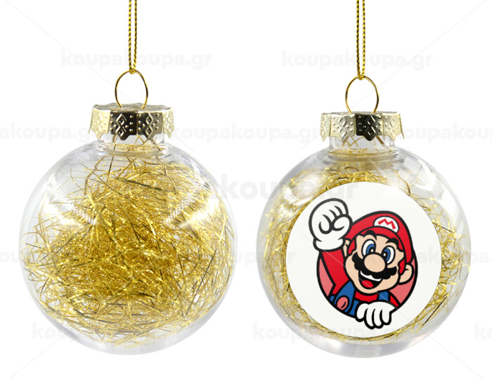 Super mario win, Transparent Christmas tree ball ornament with gold filling 8cm
