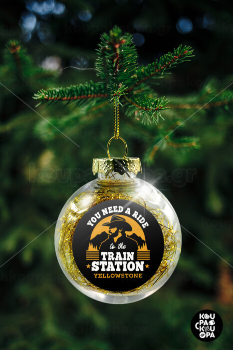 You need a ride to the train station, Transparent Christmas tree ball ornament with gold filling 8cm