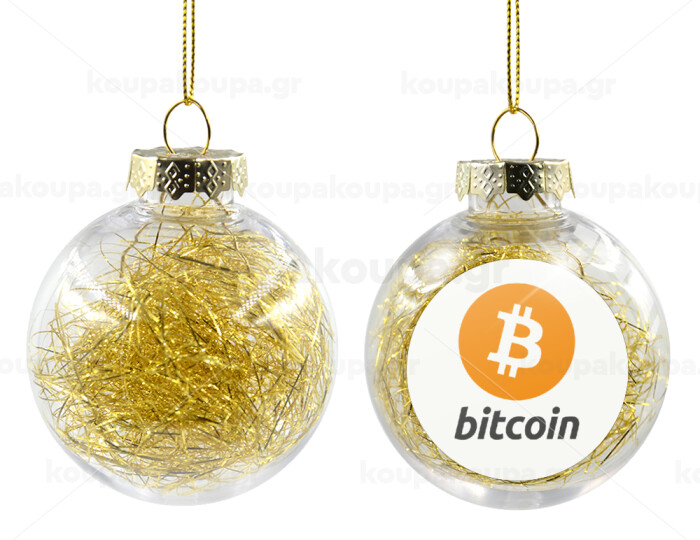 Bitcoin, Transparent Christmas tree ball ornament with gold filling 8cm