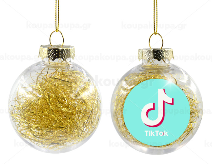 tik tok blue, Transparent Christmas tree ball ornament with gold filling 8cm