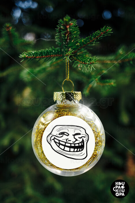 Troll face, Transparent Christmas tree ball ornament with gold filling 8cm