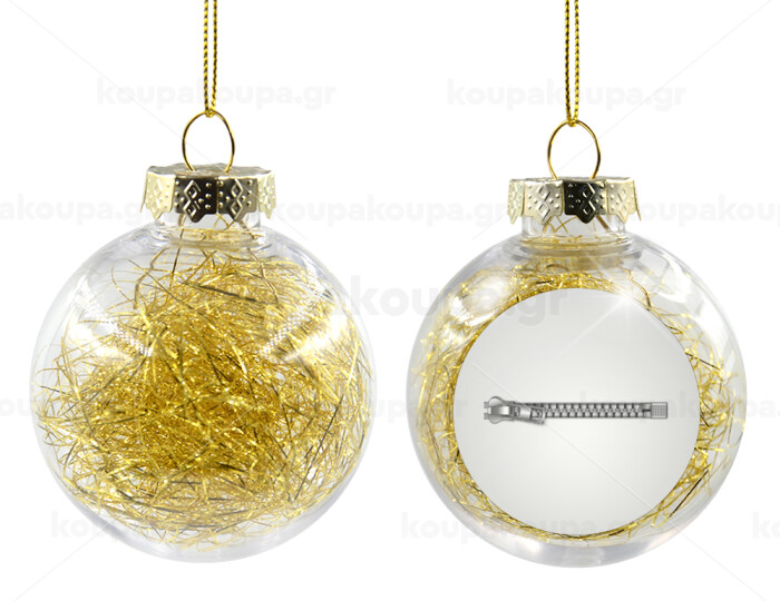 Zipper, Transparent Christmas tree ball ornament with gold filling 8cm