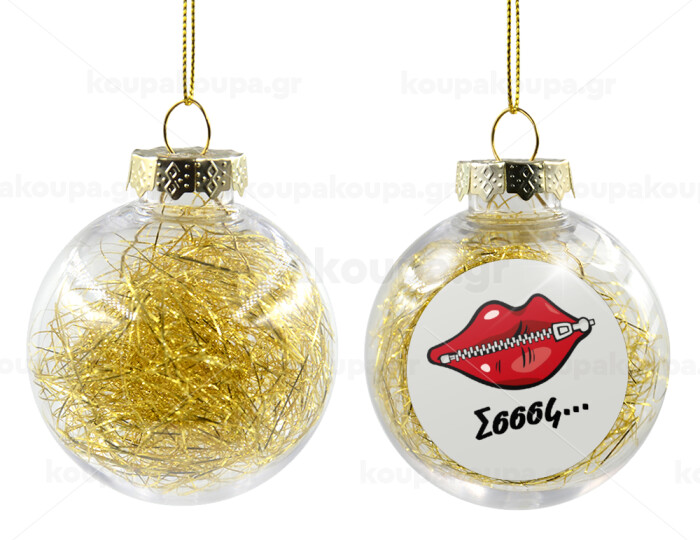 Σσσσς..., Transparent Christmas tree ball ornament with gold filling 8cm