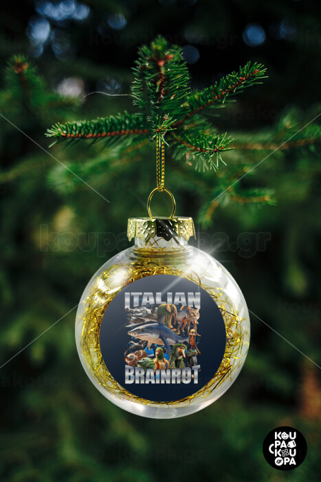 Italian Brainrot, Transparent Christmas tree ball ornament with gold filling 8cm