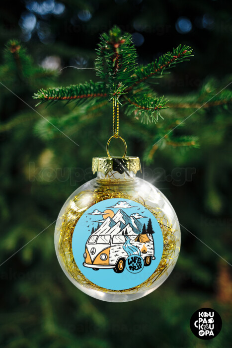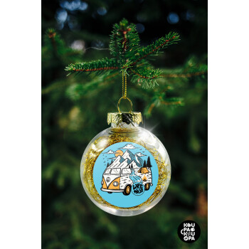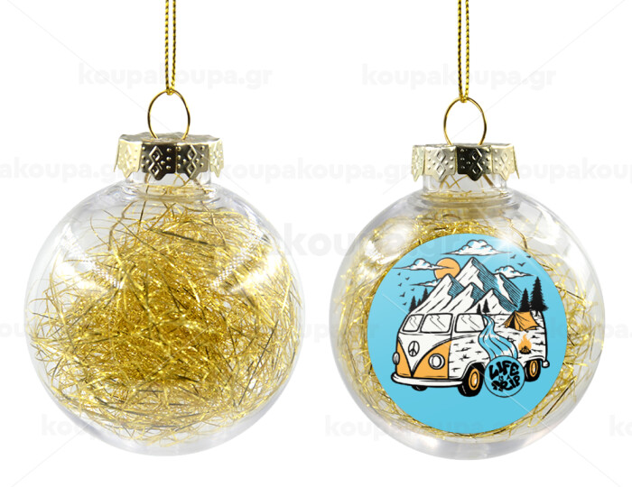 Life is a trip, Transparent Christmas tree ball ornament with gold filling 8cm