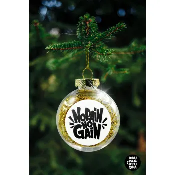 No pain no gain, Transparent Christmas tree ball ornament with gold filling 8cm
