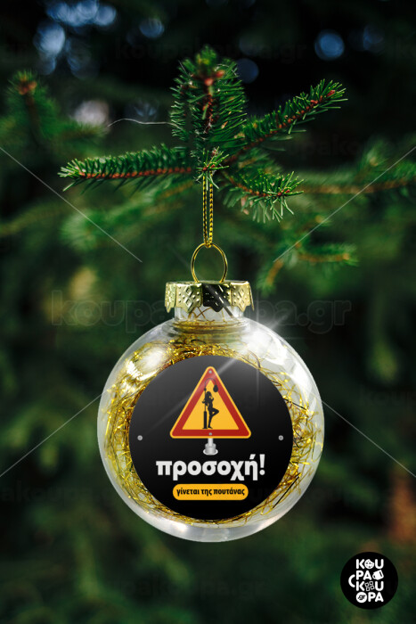 Προσοχή Γίνεται της πουτ.νας, Transparent Christmas tree ball ornament with gold filling 8cm