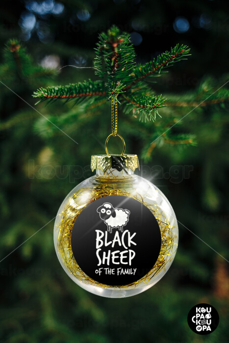 Black Sheep of the Family, Transparent Christmas tree ball ornament with gold filling 8cm