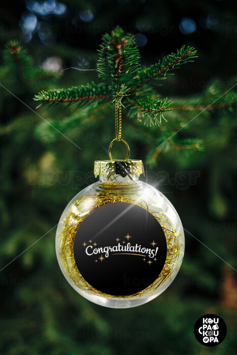 Congratulations, Transparent Christmas tree ball ornament with gold filling 8cm