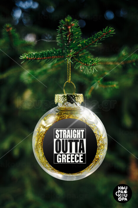 Straight Outta greece, Transparent Christmas tree ball ornament with gold filling 8cm