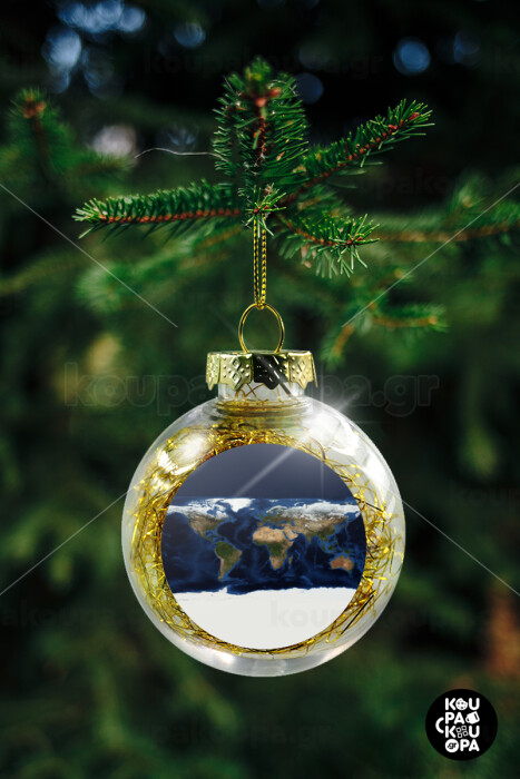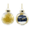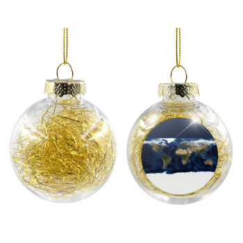 Earth map, Transparent Christmas tree ball ornament with gold filling 8cm