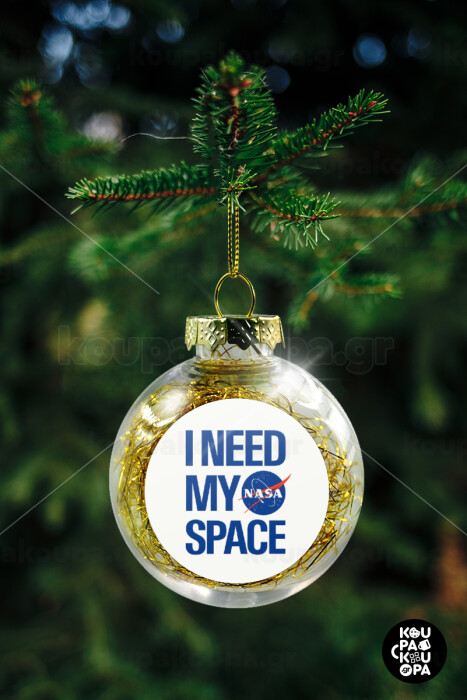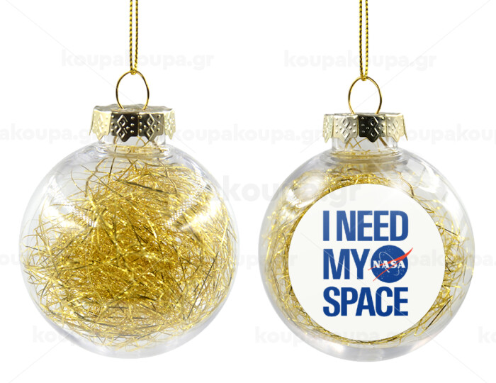I need my space, Transparent Christmas tree ball ornament with gold filling 8cm
