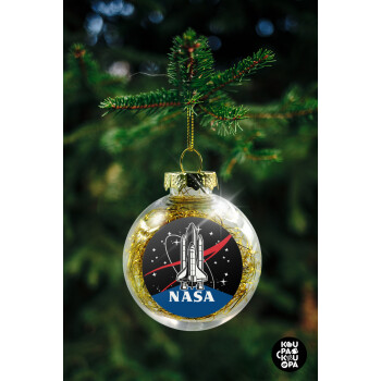 NASA Badge, Transparent Christmas tree ball ornament with gold filling 8cm