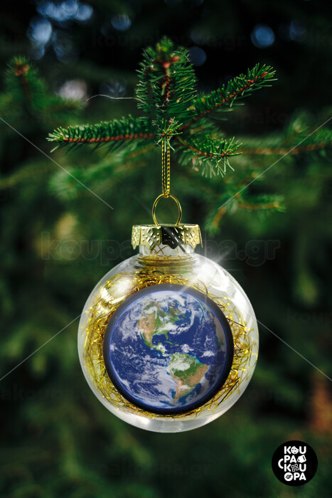 Planet Earth, Transparent Christmas tree ball ornament with gold filling 8cm