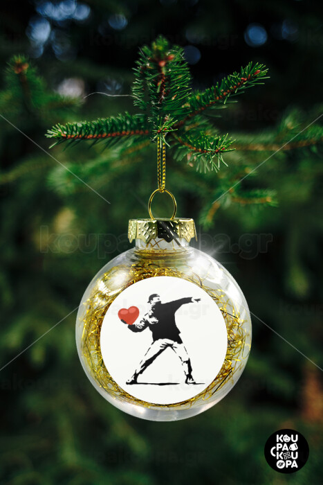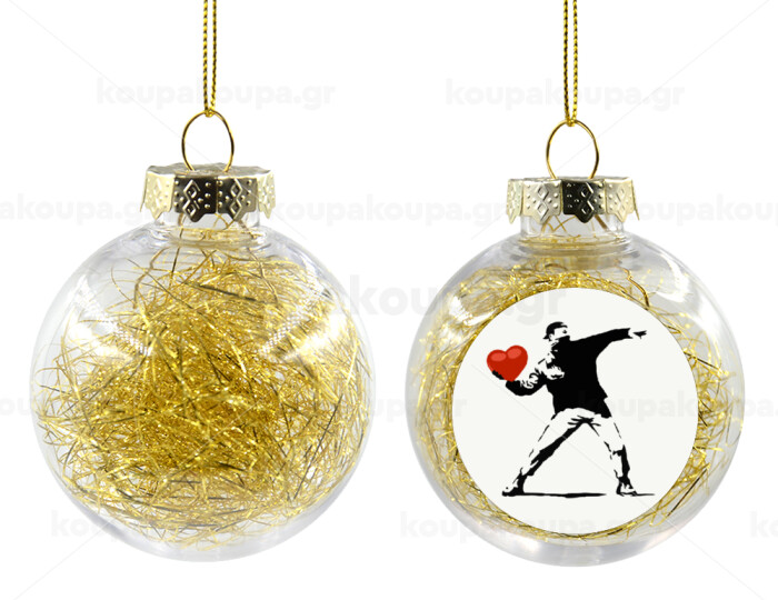 Banksy (The heart thrower), Transparent Christmas tree ball ornament with gold filling 8cm
