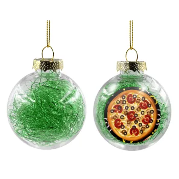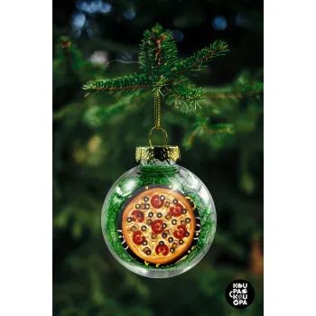 Pizza, Transparent Christmas tree ball ornament with green filling 8cm