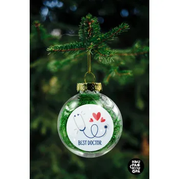 Best Doctor, Transparent Christmas tree ball ornament with green filling 8cm