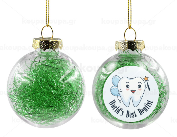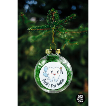 World's Best Dentist, Transparent Christmas tree ball ornament with green filling 8cm