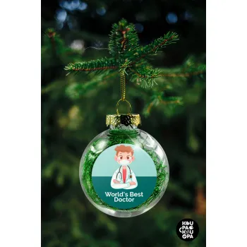 World's Best Doctor, Transparent Christmas tree ball ornament with green filling 8cm