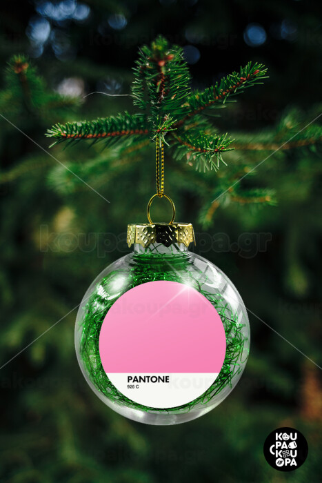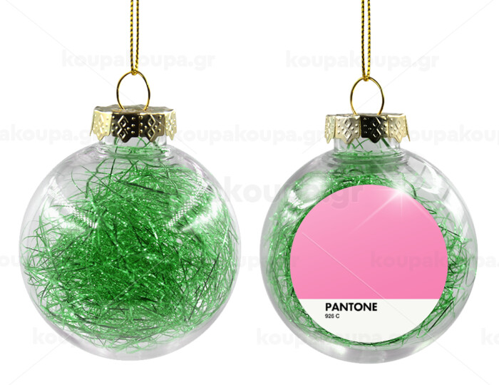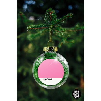 PANTONE Pink C, Transparent Christmas tree ball ornament with green filling 8cm