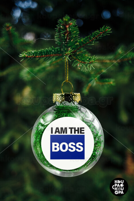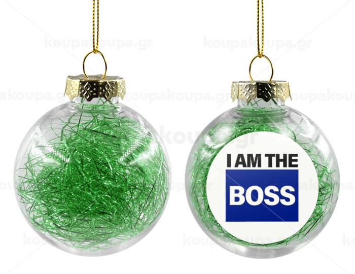 I am the Boss, Transparent Christmas tree ball ornament with green filling 8cm