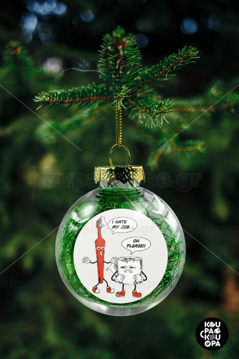 I hate my job, Transparent Christmas tree ball ornament with green filling 8cm