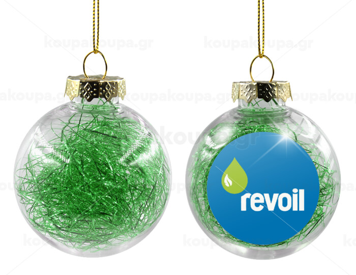 Πρατήριο καυσίμων REVOIL, Transparent Christmas tree ball ornament with green filling 8cm