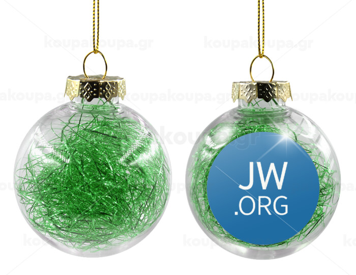 JW.ORG, Transparent Christmas tree ball ornament with green filling 8cm