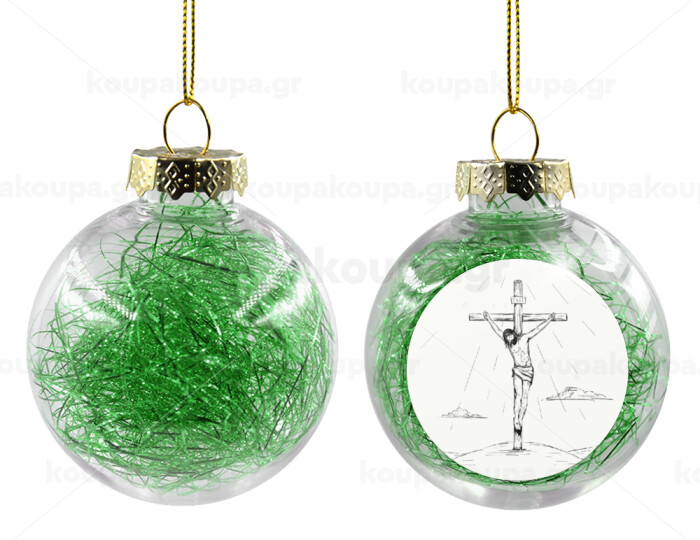 Jesus Christ , Transparent Christmas tree ball ornament with green filling 8cm