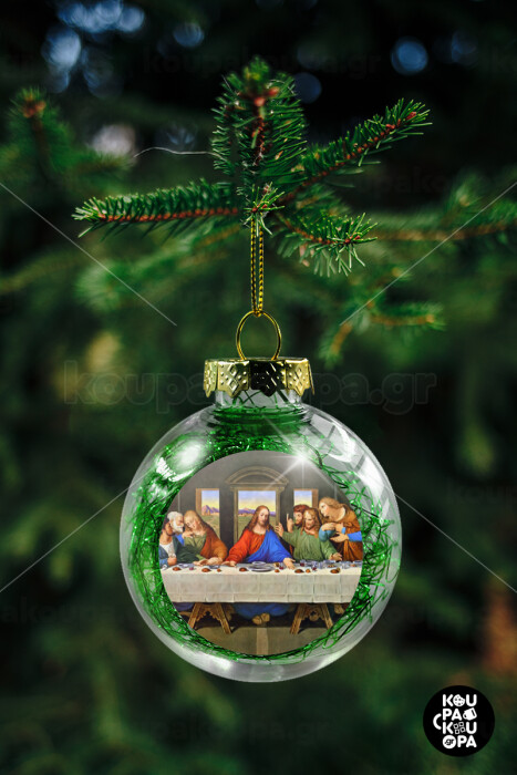 The Last Supper, Transparent Christmas tree ball ornament with green filling 8cm