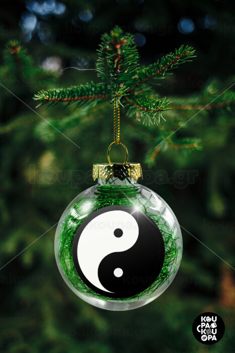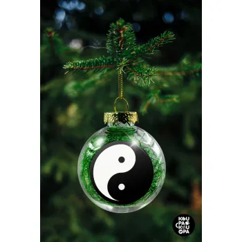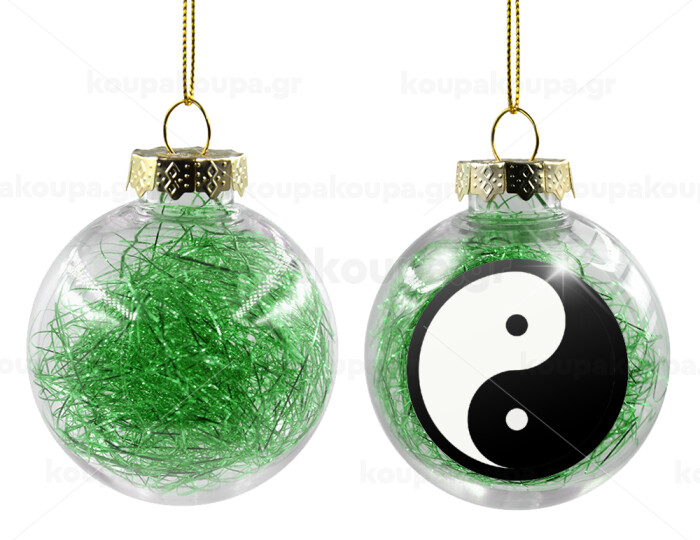 Yin Yang, Transparent Christmas tree ball ornament with green filling 8cm