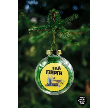 Έλα Γιώργη, πω πω μια στροφάρα, Transparent Christmas tree ball ornament with green filling 8cm