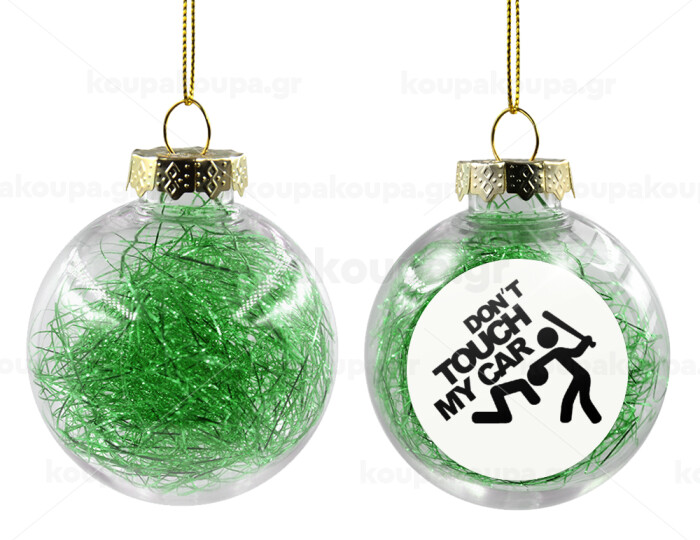 Don't touch my car, Transparent Christmas tree ball ornament with green filling 8cm