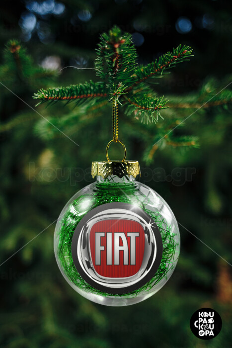 FIAT, Transparent Christmas tree ball ornament with green filling 8cm