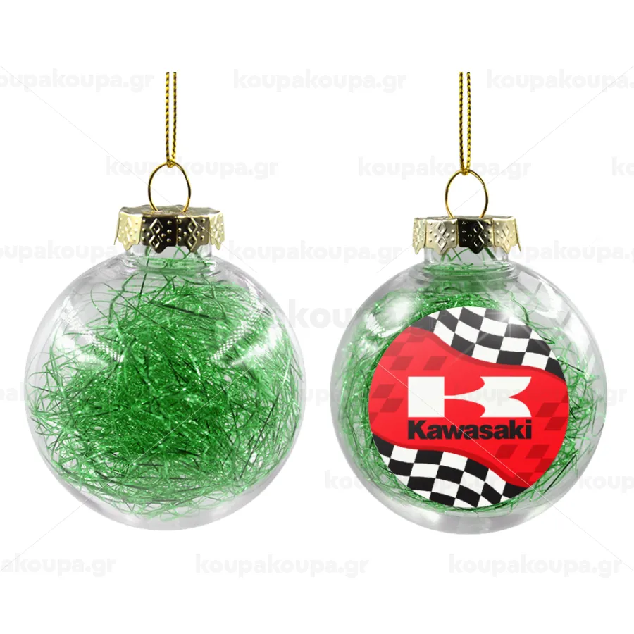 Kawasaki, Transparent Christmas tree ball ornament with green filling 8cm
