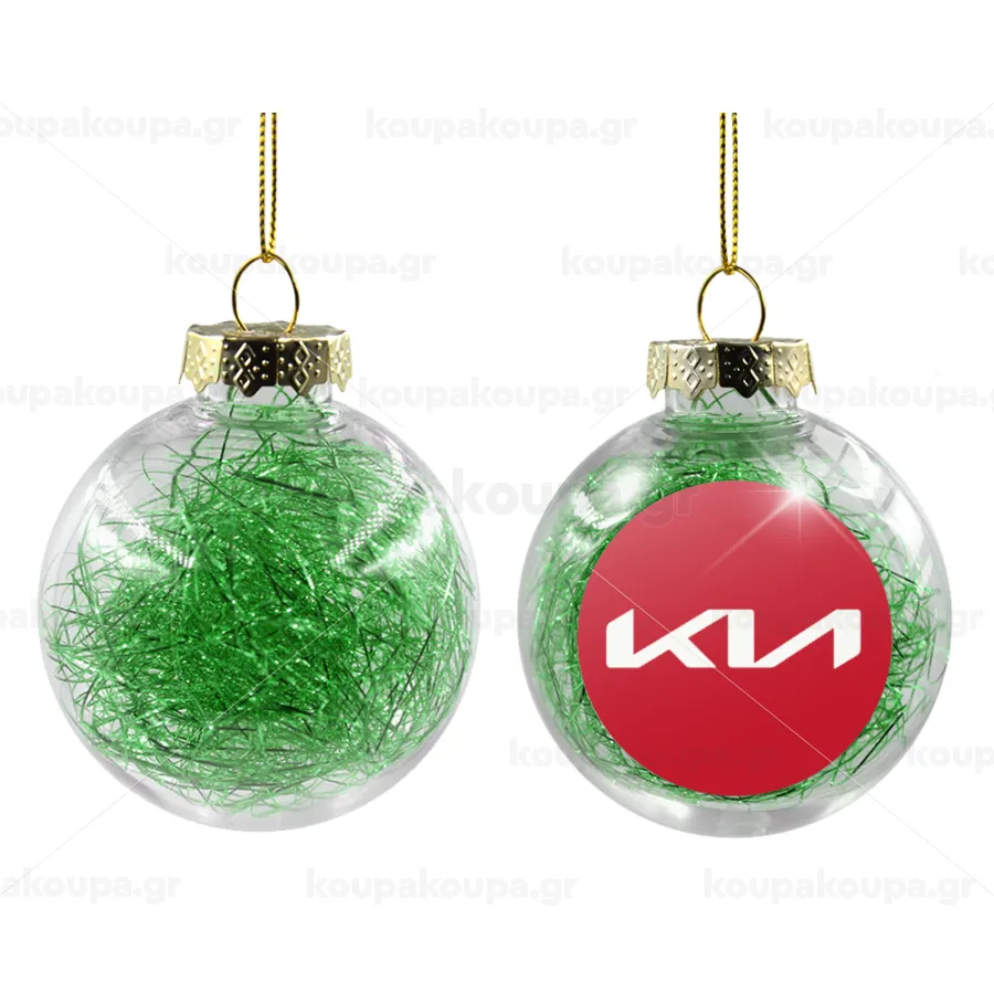 KIA, Transparent Christmas tree ball ornament with green filling 8cm