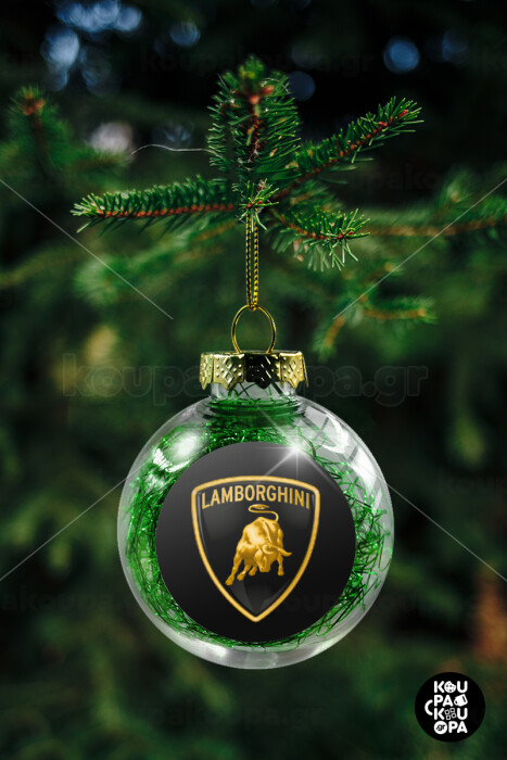 Lamborghini, Transparent Christmas tree ball ornament with green filling 8cm