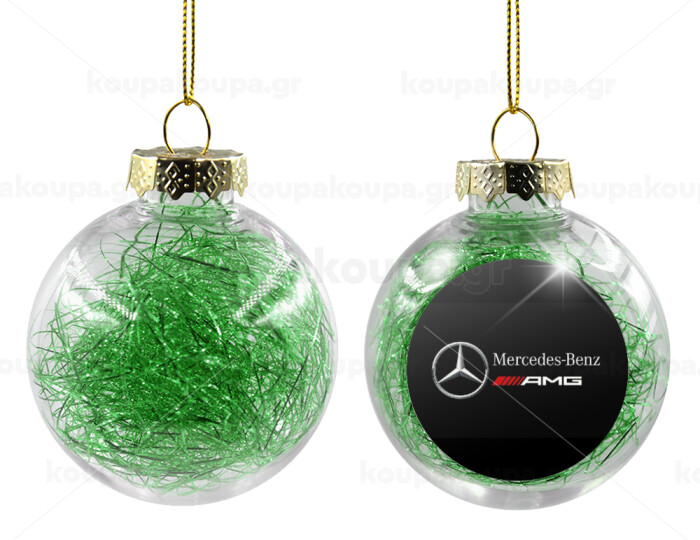 Mercedes AMG, Transparent Christmas tree ball ornament with green filling 8cm