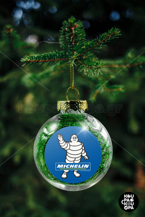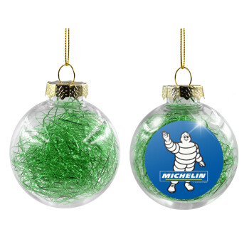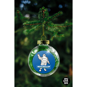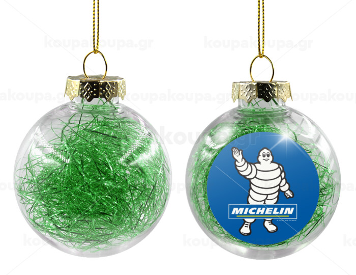 Michelin, Transparent Christmas tree ball ornament with green filling 8cm