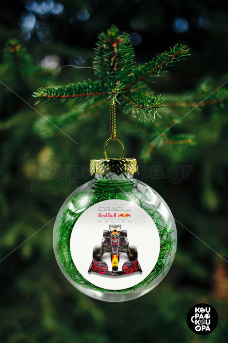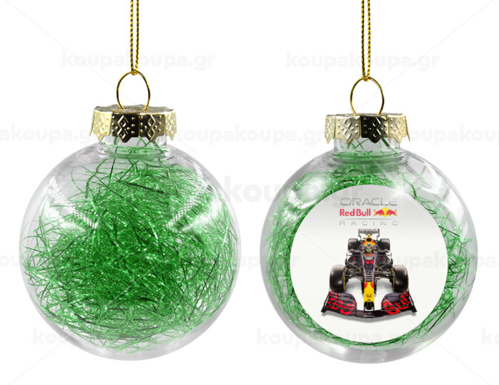 Redbull Racing Team F1, Transparent Christmas tree ball ornament with green filling 8cm