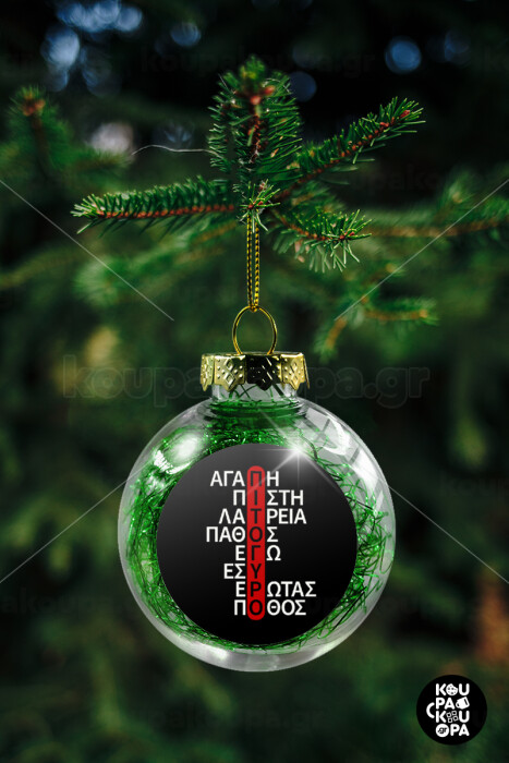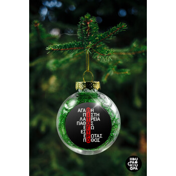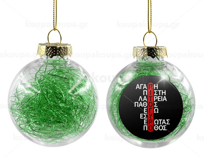 Πιτόγυρο πόθος, Transparent Christmas tree ball ornament with green filling 8cm