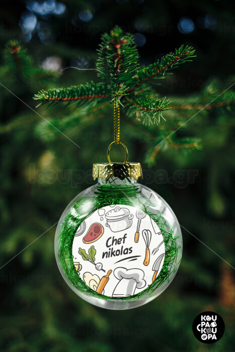 Chef με όνομα, Transparent Christmas tree ball ornament with green filling 8cm